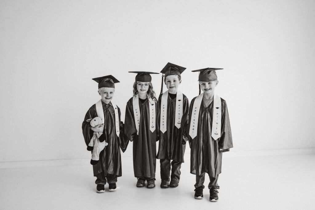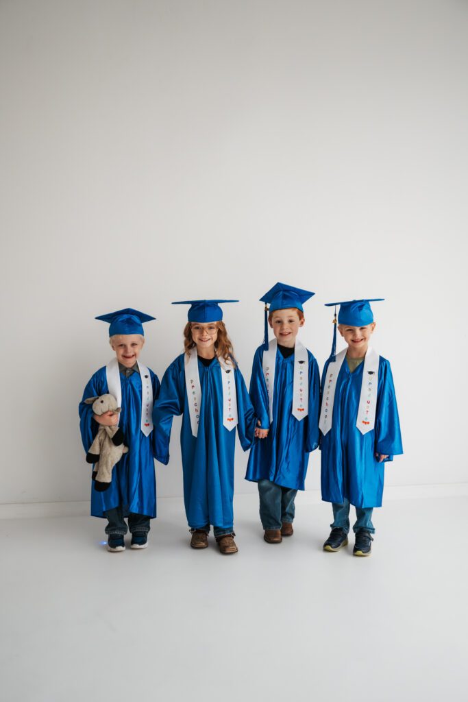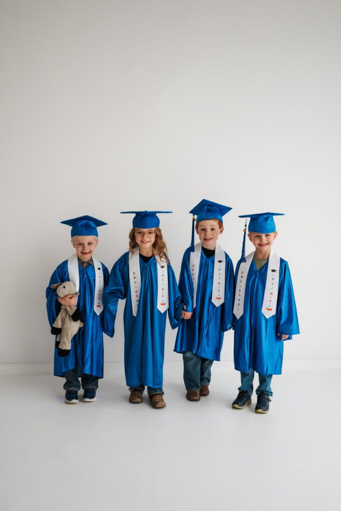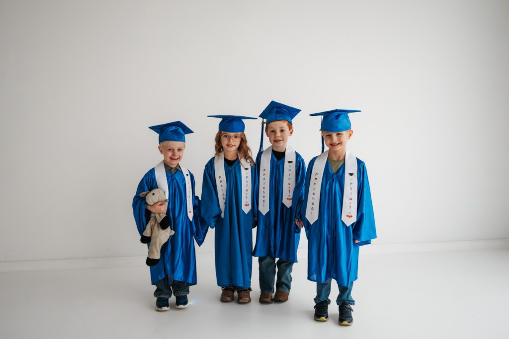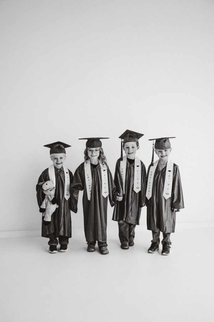 Right before my ACL surgery, my sister had a request: to get our kid’s friend group together for photos. This is their last year of daycare/preschool together and its so bittersweet. So we planned a day of graduation photos and personality minis. They’re growing so fast we wanted to make sure we got photos to document this big milestone. Each kiddo also has BELOVED stuffed animal they can’t live without and we made sure they had their moment too for the mems 🤍 I’d be lying if I said these didn’t bring me to tears… scroll to see the cutest preschool grads ever (biased, I know 😆 sorry)